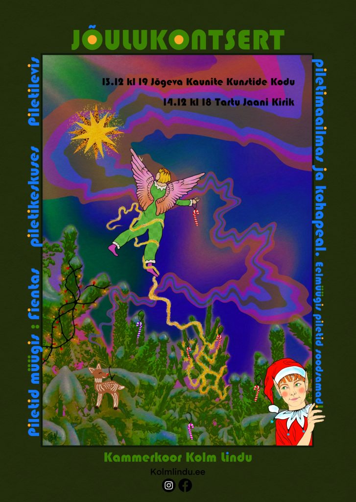 Kammerkoor Kolm Lindu annab üle kuue aasta taas avaliku jõulukontserdi, seekord lisaks Tartule Jõgeval. See on meie esimene täispikk kontsert, mida juhatab Kärolin Tuisk! Klaveril saadab Eva Lotta Juurma.